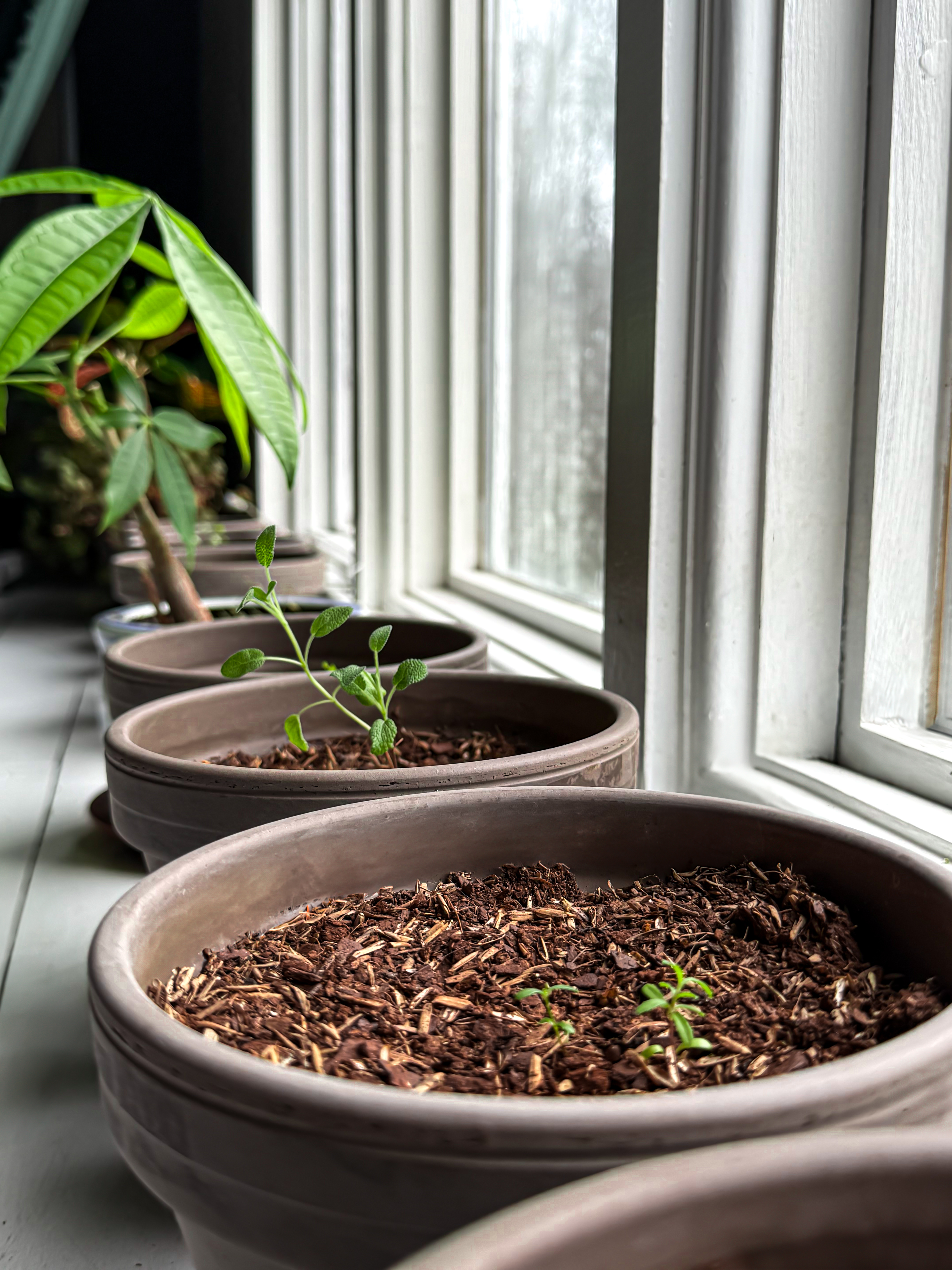 This is our first winter here at Fiddlehead Homestead, and we decided to bring a little life inside by starting herbs in small pots. It’s been an exciting, albeit slightly experimental, process that we’re excited to share!